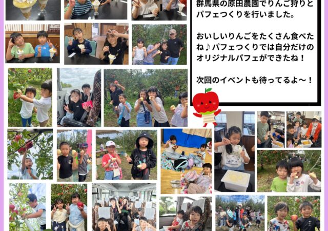 2025年10月5日(日)に群馬県の原田農園でりんご狩りとパフェ作りを行いました! 美味しいりんごを自分でとっての食べ放題ではみんなたくさん食べていました! オリジナルのパフェ作りでは、自分だけのパフェを作って楽しみなが…