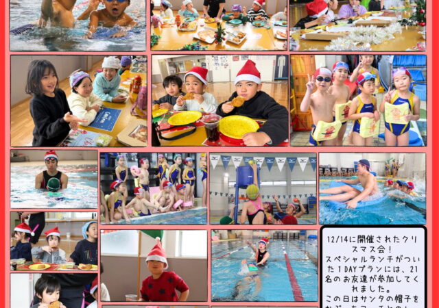 2025年12月14日(日)に、クリスマス会–1DAY プラン-と-半日プラン-を開催しました! 2つあわせて、48名が参加してくれました! この日は、サンタの帽子をかぶったコーチとのレッスンからスタート!ク…