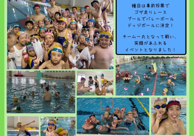 2025年6月8日(日)に、2~10級&アドバンスコース限定のイベントを初開催しました! 種目は事前に子どもたちに投票をしてもらい、「ゴザ走りレース」「プールでバレーボール」「プールでドッヂボール」に決定! チーム一丸と…